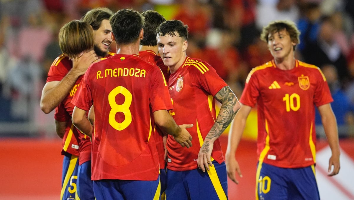 España: Fran González; Álex Jiménez, Mosquera, Yarek, Obrador; Gerard Hernández (Chema Andrés 67'), Rodrigo Mendoza (Peio Canales 78'); Mayenda (Fer López 59'), Iker Bravo (Marc Guiu 78'), Joel Roca (Pablo García 59'); y Gonzalo.