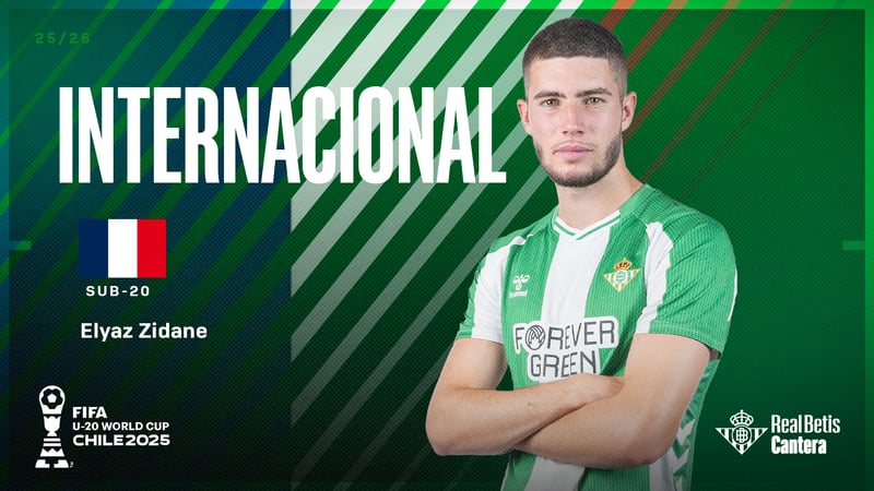 "El zaguero verdiblanco Elyaz Zidane ha sido citado por la Selección de Francia para participar en el Mundial sub 20 que se celebrará en Chile. El futbolista galo estará concentrado con su selección desde el próximo lunes 22 de septiembre y podría permanecer en tierras chilenas hasta el 19 de octubre, cuando se disputará la final", han anunciado los medios oficiales del club bético en un comunicado en el que recuerdan que 'Les Bleuets' se medirán en su grupo a los combinados de Sudáfrica (el lunes 29-S, a las 17:00 horas), de Estados Unidos (jueves 2-O, 17:00 horas) y de Nueva Caledonia (domingo 5, 17:00 horas) buscando el pase a las eliminatorias decisivas. De completar este prestigioso torneo, el joven central de 19 años se perdería los duelos ligueros frente a Marbella CF, Algeciras CF, Villarreal B y Atlético Sanluqueño.