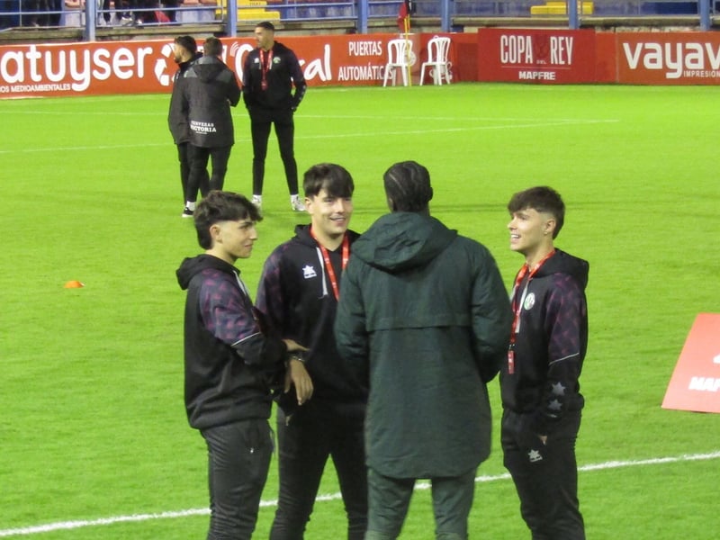 Un poco más a la izquierda, otra de las escenas de la tarde la protagonizaron Adrián San Miguel y una serie de jóvenes aprendices que aparecieron por primera vez en una convocatoria copera. En este sentido, el guardameta hispalense permaneció durante varios minutos dando consejos a Mateo Flores, Carlos Guirao y Jesús Rodríguez. Como muestra de su experiencia, el meta bético ejerció de 'padre' con los tres canteranos.