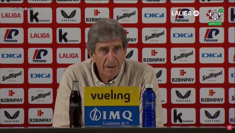 Finalmente, Pellegrini se refirió al campo experimentado por su equipo desde la última comparecencia a orillas del Nervión: "Diría que somos un equipo con características distintas. Si armamos un mediocampo con William Carvalho, Isco Alarcón y Guido Rodríguez, son jugadores con más control del balón. Hoy, en el primer tiempo, perdimos muchísimos balones, sobre todo los diez o quince primeros minutos, que le dieron más ímpetu al Athletic Club. Hoy son jugadores de más trabajo, de ida y vuelta, quizás con menos técnica, pero más potencia. Además, con cinco o seis bajas importantes, intentamos que el equipo pueda competir. En el segundo tiempo competimos y lo hemos hecho durante toda esta Liga. Así que son características distintas y tenemos que saber adecuarlas. En el segundo tiempo creo que sí controlamos un poco más y tuvimos más llegada".