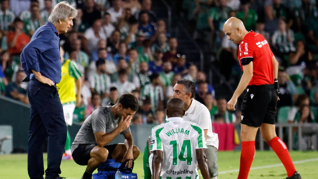 El momento en el que el doctor del Betis informa a Pellegrini de lo que posiblemente sufra el portugués.CORDON PRESS