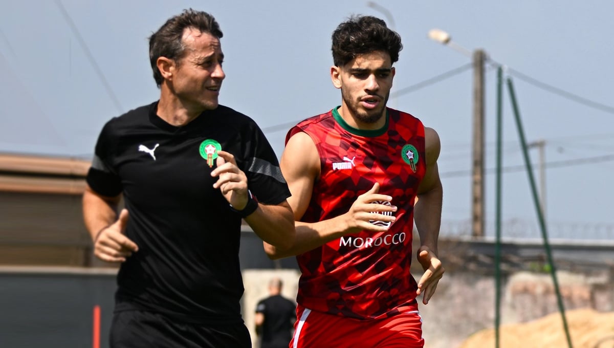 Ez Abde, jugador del Betis, se ha ejercitado en solitario, haciendo carrera continua con Marruecos.@EnMaroc