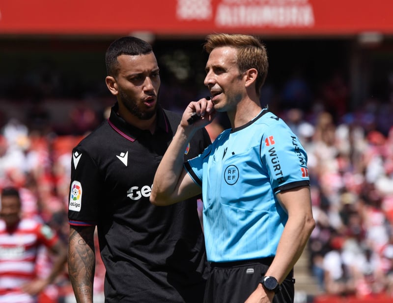 Tampoco avisó el manchego de cuna al colegiado de campo cuando el afectado en la roja realizó una entrada más fuerte y con pierna de por medio a Romain Perraud, cortando un avance prometedor del francés, con el que se encaró. Ahí la cosa se quedó en amarilla. Tampoco vio la presunta agresión del 'enemigo' de Fede Valverde a Diego Llorente sin balón de por medio, perdonándole nuevamente la expulsión. Con anterioridad, no corrigió a Martínez Munuera en El Gran Derbi de la jornada 9ª cuando el valenciano pitó penalti del propio Diego Llorente cuando éste había saltado de espaldas y sin los brazos extendidos, como decía el de Benidorm. En la jornada 13ª no informó a Ortiz Arias de que Carl Starfelt estorbaba la visión de Rui Silva en el 0-1 del RC Celta en el Benito Villamarín. Por último, la pasada jornada sí apretó para que se señalara penalti a Frenkie de Jong a Vitor Roque, pero no insistió en que la amonestación fuera roja y no amarilla.