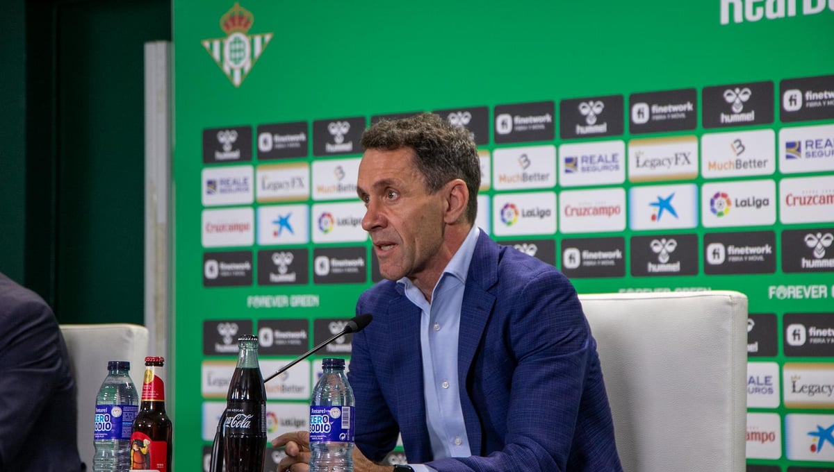 "Sabía que me íbais a preguntar por nombres, pero hoy tengo que hacer de central expeditivo", argumentaba entre bromas el nuevo director deportivo verdiblanco para justificar que diese el menor número de pistas posibles sobre la planificación de la 23/24