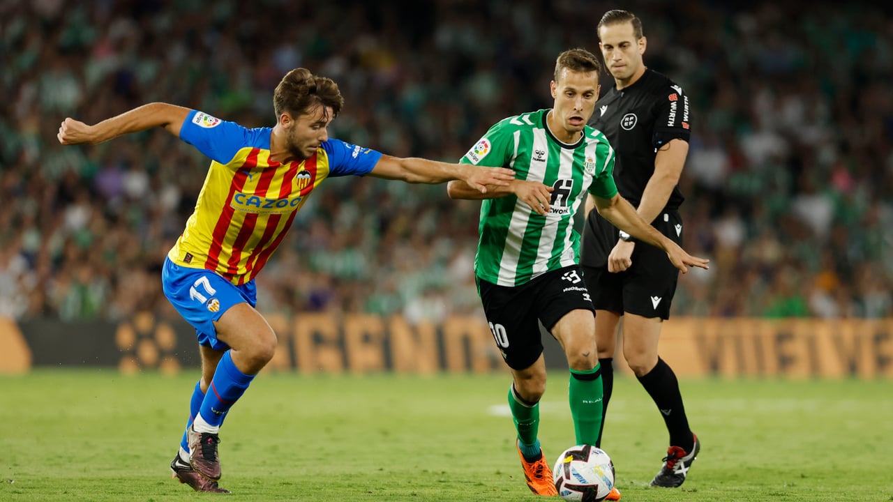 Nico González pugna con Canales en un duelo entre Betis y Valencia, donde ha estado cedido por el Barcelona.UES