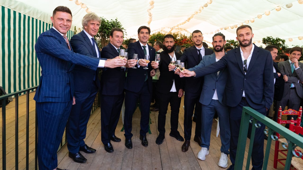 La plantilla del Betis celebró este lunes el clásico almuerzo desde la Feria de Abril. Fue en la caseta de una conocida Peña Bética y hubo brindis y conjura por repetir clasificación europea por cuarto año consecutivo