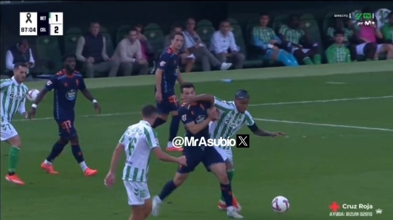 La polémica en el Betis - Celta: fuera de juego posicional en el 0-1, posible mano del Chimy previa al 2-2, indulto a Johnny...