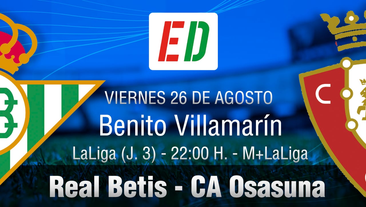 El choque entre Real Betis y CA Osasuna de la tercera jornada de LaLiga reúne este viernes en el estadio Benito Villamarín a dos de los cuatro equipos que hasta ahora han hecho pleno de victorias en el arranque del torneo -junto al Villarreal y el Real Madrid-, con lo que el objetivo es el de mantener la racha en un envite en el que ambos confían en ratificar las buenas sensaciones en medio del inevitable ruido del mercado de fichajes, con Pellegrini pendiente de inscripciones de última hora y temiendo lo peor sobre salidas dolorosas.
