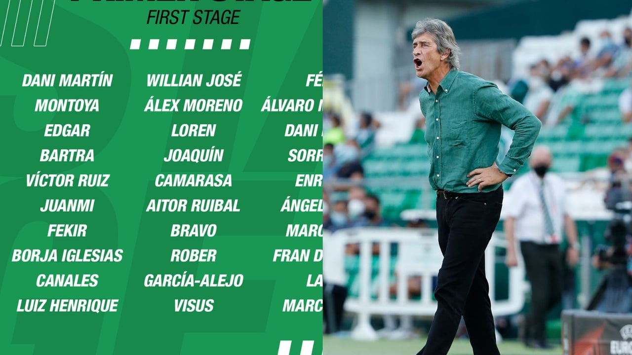 La lista está formada por estos 18 jugadores del primer equipo: Bravo, Dani Martín, Martín Montoya, Edgar, Bartra, Víctor Ruiz, Álex Moreno, Camarasa, Juanmi, Joaquín, Aitor Ruibal, Rober, Fekir, Borja Iglesias, Canales, Luiz Henrique, Willian José y Loren.
