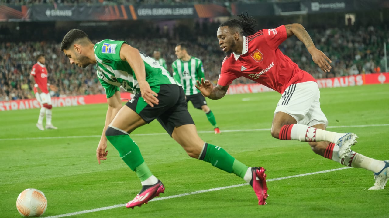 Ayoze, con Juanmi al fondo, perseguido por Wan-Bissaka, del United.Lince