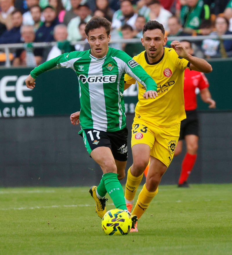 Su entrada tras el descanso mejoró sustancialmente en centro del campo bético en la doble vertiente, por su clarividencia para distribuir el balón y frenar los intentos a la contra del Girona. Bestial cómo tapó a Bryan en una ocasión clara de gol para después salir con el balón jugado.