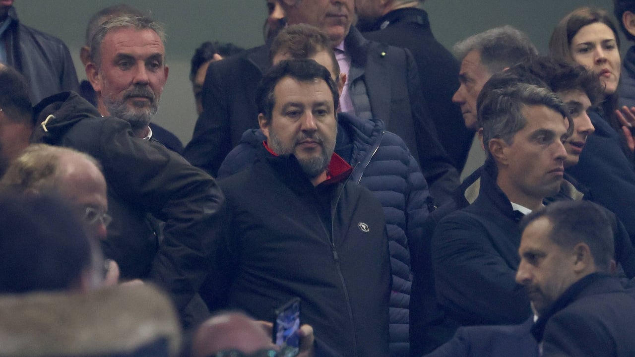 Un detalle de la tribuna de autoridades de San Siro el pasado 7 de noviembre, con el vicepresidente del Gobierno italiano, Matteo Salvini, a la cabeza. CORDON PRESS