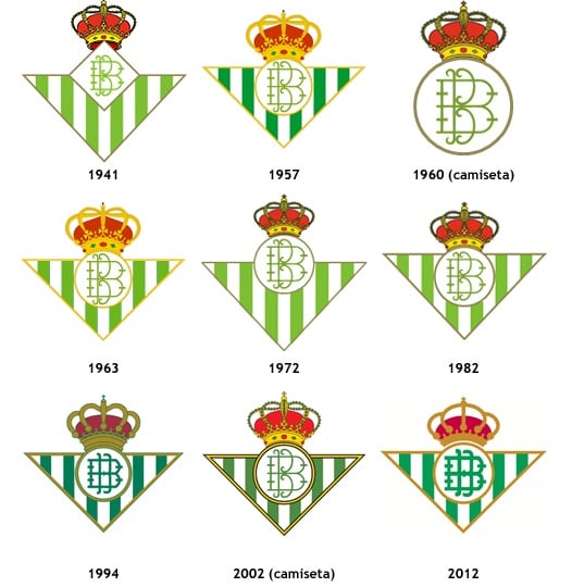 El actual escudo del Betis data de 1957, cuando el presidente Benito Villamarín le dio el visto bueno a un boceto que le presentó José María de la Concha que, según Carrillo, modificaba en poco el que se venía utilizando desde la proclamación de la II República en 1931, con cuyos dirigentes pertenecientes a la masonería "mantenía lazos significativos la junta directiva que adoptó el nuevo emblema".