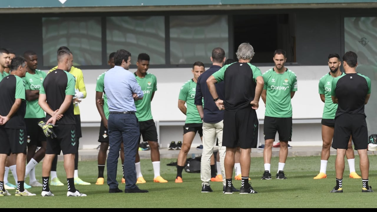 Ramón Planes se dirige a la plantilla del Betis y a Pellegrini antes del entrenamiento de este martes.Captura El Chiringuito TV