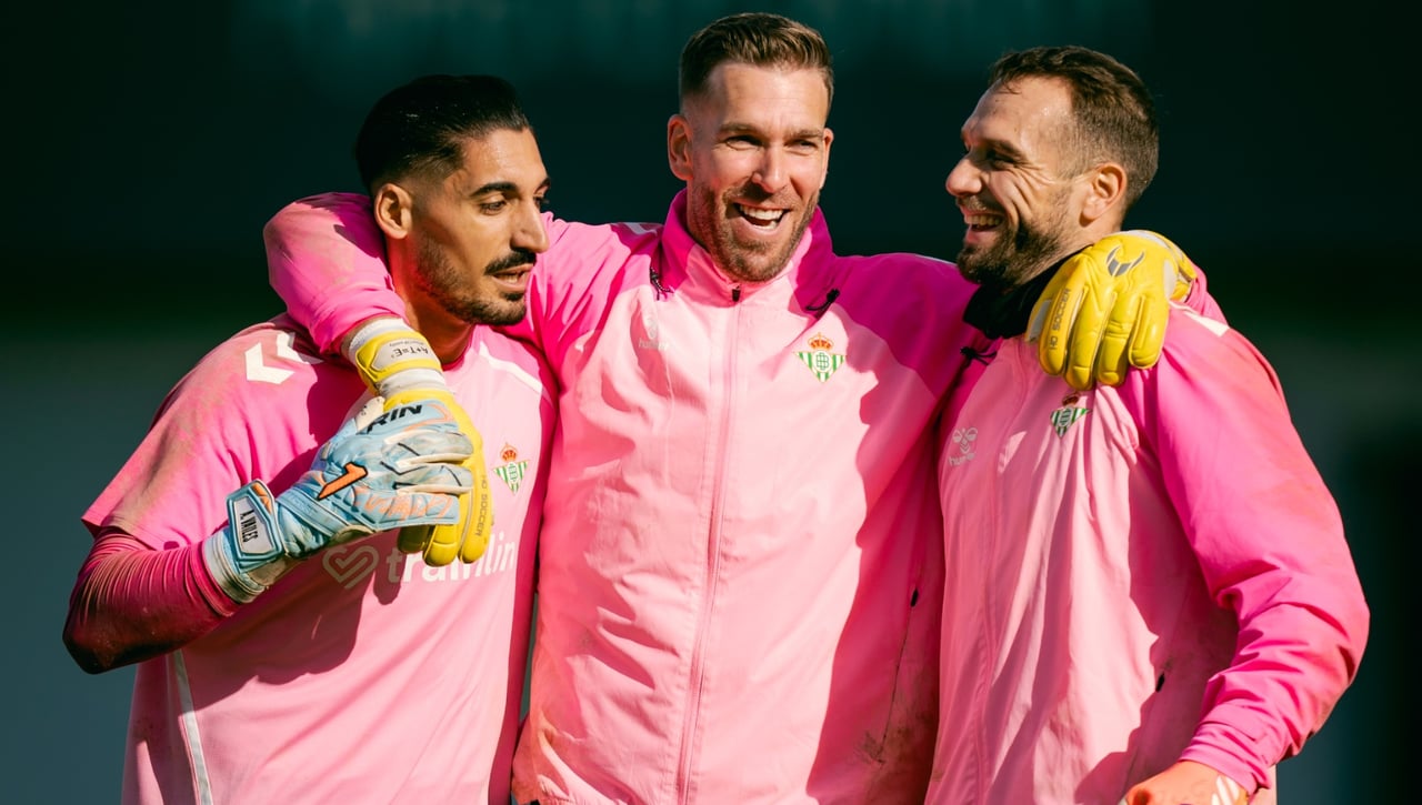 Los porteros Álvaro Valles, Adrián San Miguel y Pau López exhiben su buena relación en los entrenamientos.Real Betis