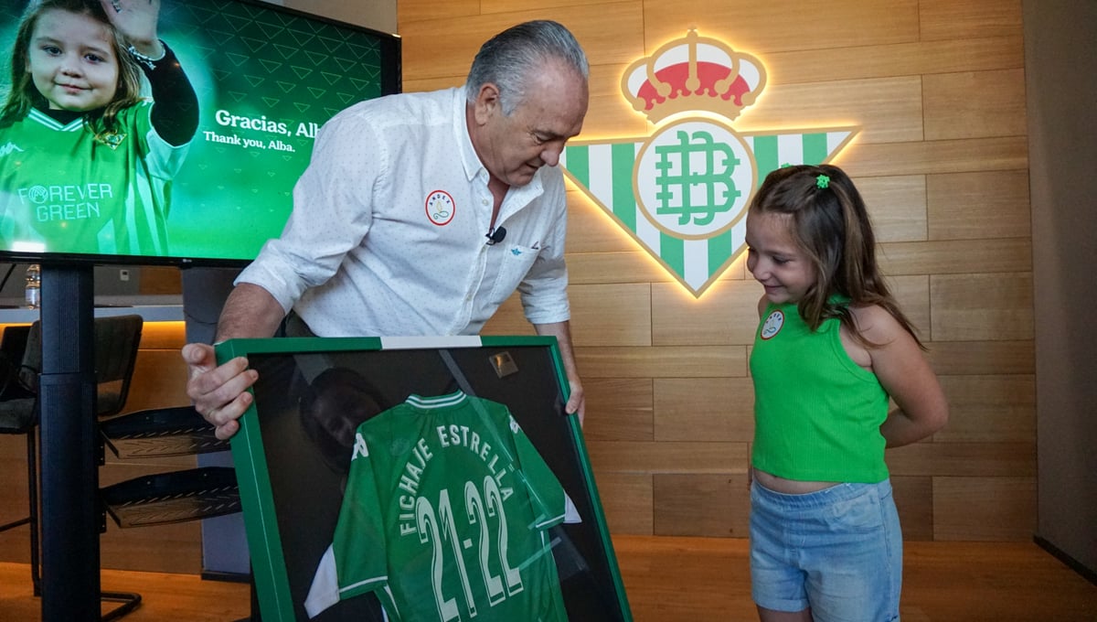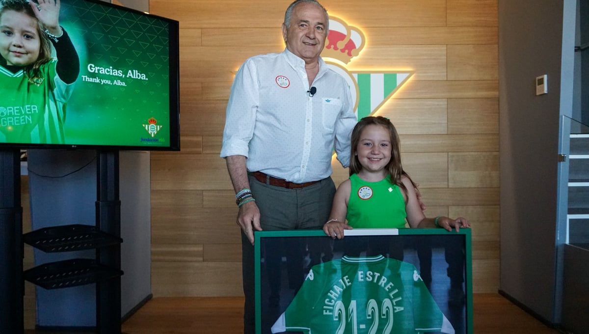 La Fundación Real Betis Balompié ha homenajeado este miércoles en el Estadio Benito Villamarín a Alba Fernández en su último día como protagonista del ‘Fichaje Estrella’, proyecto que la entidad verdiblanca estrenaba en septiembre de 2021 y que tiene como principal objetivo dar un mensaje de esperanza a niños que están pasando por un proceso de enfermedad grave. Alba tiene ocho años y, con tan sólo cuatro, le fue diagnosticada leucemia linfoblástica aguda. Tras dos años y medio de tratamiento fue dada de alta. Esta pequeña bética, por su valentía, actitud alegre y positividad durante todo el proceso de su enfermedad fue nombrada con tal distinción la temporada 2021/2022 de la Fundación RBB.