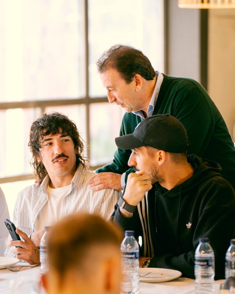 Nada más terminar el entrenamiento matinal, el tercero en lo que va de semana después de descansar el lunes y volver al trabajo en la mañana del martes, nadie se ha movido de la Ciudad Deportiva Luis del Sol. Allí mismo, en la 'zona lounge' de las instalaciones de Los Bermejales estaba todo preparado para lo que suele llamarse un 'entrenamiento invisible' en el que los presentes compartieron mesa, mantel, conversaciones, risas y muchas dosis de buen rollo.