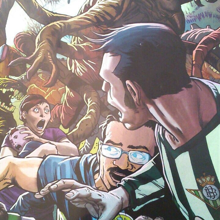 Se llamaba Carlos Pacheco, era gaditano y, durante muchos años, trabajó para DC y Marvel ilustrando sus cómics, momento que aprovechaba para 'españolizar' algunas viñetas. Arturo Pérez Reverte en un avión lleno de corresponsales de guerra, dos nombres que sólo podían ocurrírsele a un genio del humor como el desaparecido Chiquito de La Calzada, un héroe con una camiseta de Los Chichos ("nada de Black Sabbath ni AC/DC")... y el Real Betis. Ya en abril de 2021, los avezados lectores se habían percatado de una de las primeras referencias verdiblancas, explicada en estos términos por su propio responsable: "Ya son muchos los años en los que muchas de estas colecciones son dibujadas por artistas de nuestro país, de la misma manera que hay muchos actores y directores en las pelis de Hollywood. Desde que empecé a trabajar con ellos, hace ya esto la tira de años, me gustó meter este tipo guiños dirigidos a los lectores de aquí, dando un toque particular a mis tebeos con ello, pero no es nada irreal. En más de una ocasión me he encontrado por las calles de NY a gente con chandales o camisetas del Betis, cosa que me ha hecho sonreír cuando ha ocurrido, claro. Un 'BIBARBETIHHH' a modo de saludo y que sea devuelto con un solemne 'MANQUEPIERDAAA OEOEOEEEE' en pleno Park Avenue es algo demasiado surrealista como para no hacer que ocurra. Así que quise inmortalizar esos momentos de risas y sonrisas en este tebeo, que ya tiene unos años, pero que se ha actualizado al haber sido la inspiración de la serie 'Falcon&WinterSoldier'".