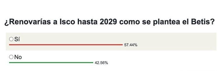 Tras esa intención del club conocida públicamente estos días, en Estadio Deportivo le hemos planteado al aficionado verdiblanco si le gustaría esa renovación o no se quiere comprometer tantos años teniendo ya el malagueño una cierta edad. A pesar del increíble cariño de la afición al de Arroyo de la Miel, la votación ha estado muy igualada, aunque el 'sí' ha ganado. Con el 57,44% de los votos, la hinchada verdiblanca ha elegido que lo renovaría hasta 2029. Por el lado contrario, el 42,56% no se comprometería tantos años con el malagueño. La afición anda dividida, pero, aún así, sigue ganando la opción de renovarlo hasta que él quiera casi.
