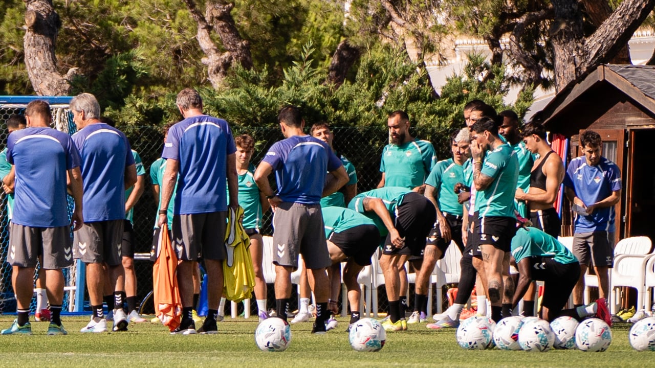 Borja Iglesias, al fondo, en una de las pocas fotografías que hay suyas en la concentración del Betis en Almancil.Real Betis