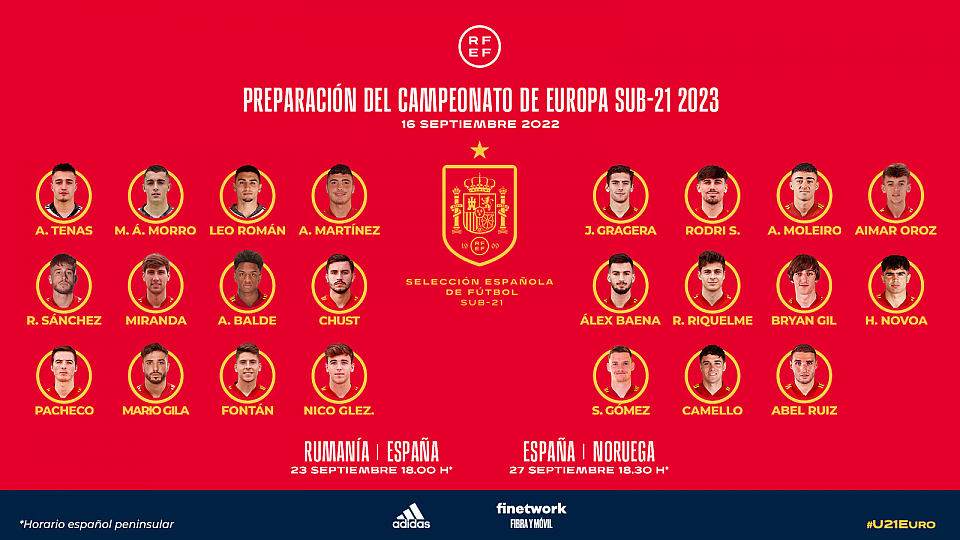 Riquelme sumó cuatro partidos internacionales con la sub 21 e incluso marcó un gol y aportó tres asistencias, con pleno de triunfos para España en ese cuarteto de encuentros. Rodri también es un habitual en la Rojita, donde acostumbra a ser titular y lucir galones. Fue titular en los seis partidos que participó y suma dos tantos y un pase gol.