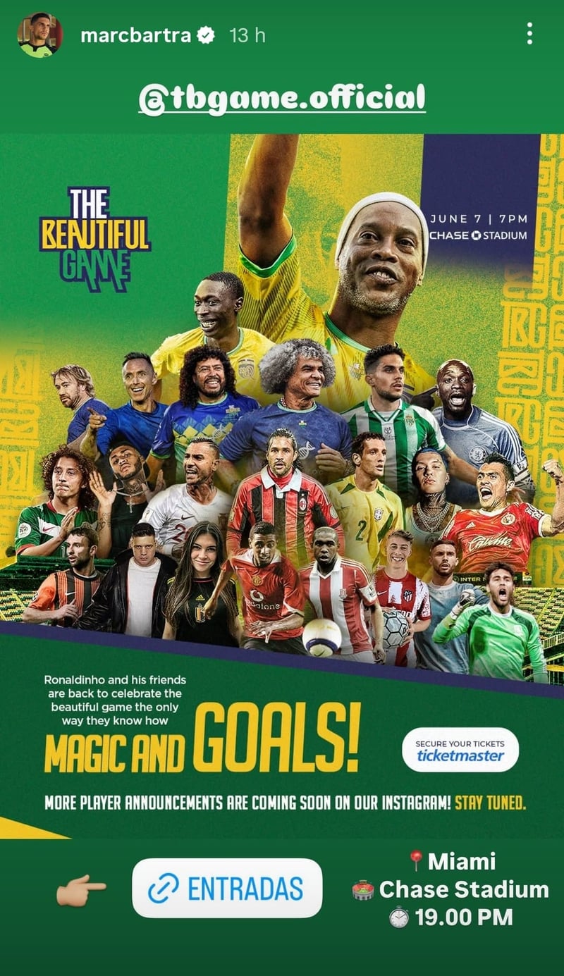 Y lo hizo con doblete incluido -una de las dianas con asistencia del propio Ronaldinho-, sumándose al ataque como ha hecho en este tramo final de curso en el que se le resistieron varios golazos, especialmente ante Fiorentina y Chelsea. El encuentro tuvo lugar en la tarde-noche de este pasado sábado, 7 de junio, en el Chase Stadium de Miami (Florida). Con 'The Beautiful Game' -El Juego Bonito o 'Jogo bonito'- como nombre de la convocatoria, además de Bartra participó otro ilustre jugador con pasado en el Betis como es Andrés Guardado, que era el extranjero con más partidos oficiales con la camiseta de las trece barras hasta que hace sólo unas semanas le superó William Carvalho.