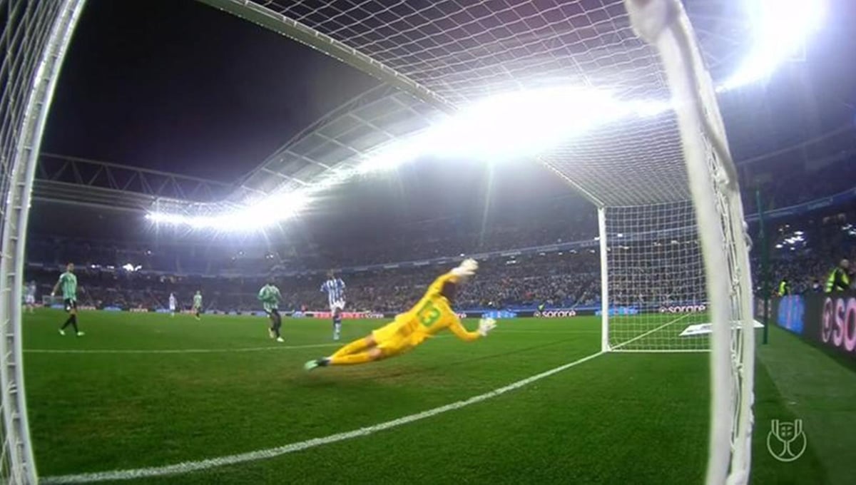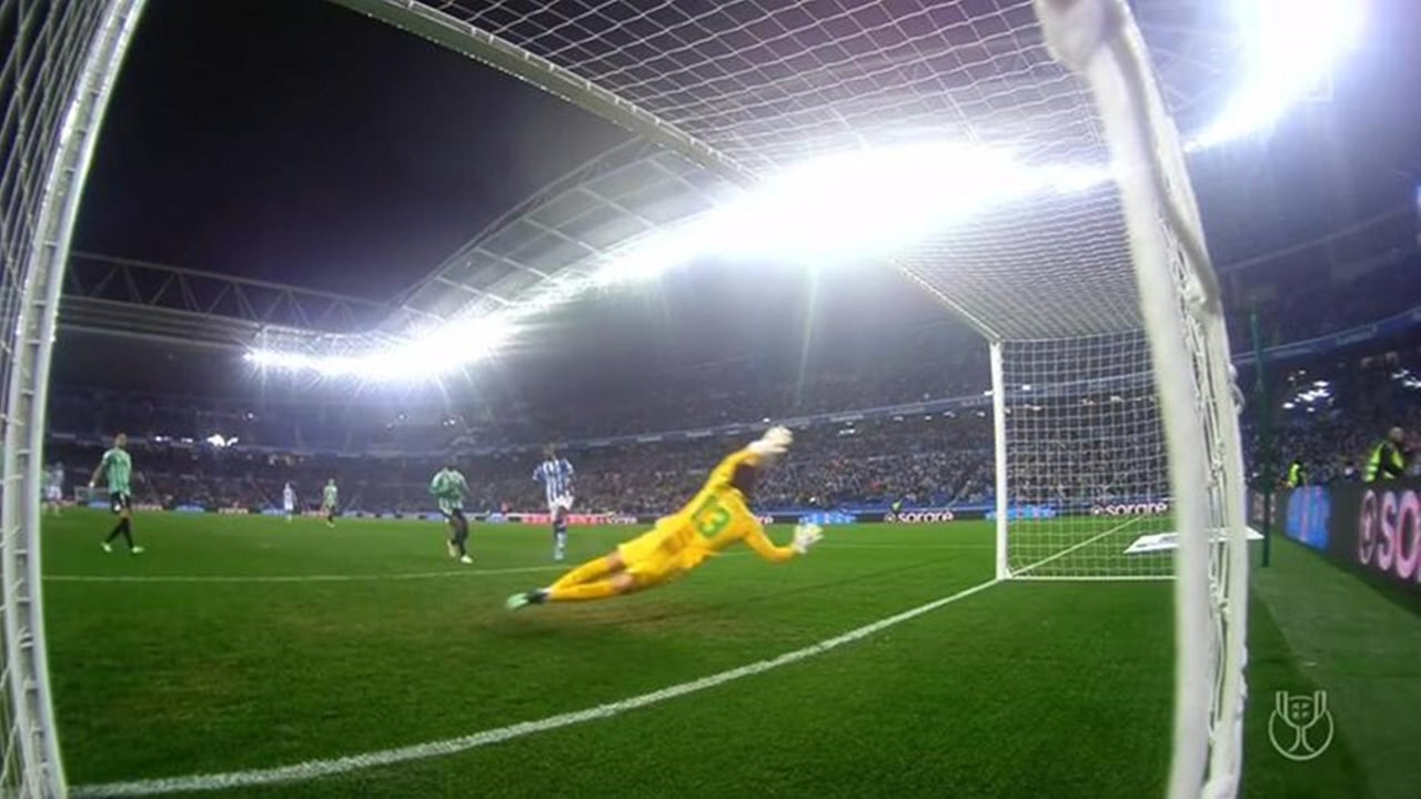 Un impresionante plano del paradón del meta portugués a Isak en los cuartos de la Copa del Rey 21/22.DAZN