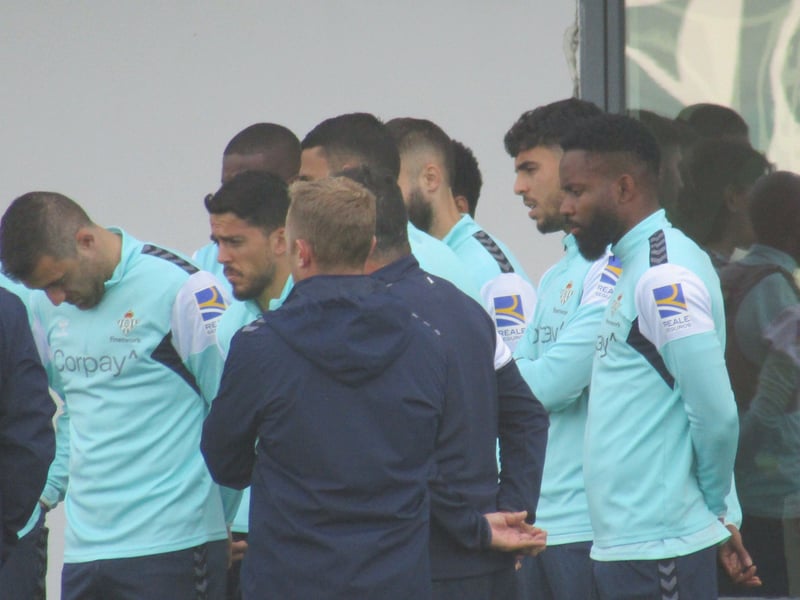 La sesión del martes arrancó con una charla de más de dos minutos por parte de Manuel Pellegrini. Del discurso se desprendía un aroma de seriedad que se palpaba en el rostro de los jugadores, quienes atendieron cabizbajos al entrenador chileno. La charla, que acabó entre aplausos, dio lugar a los primeros ejercicios de activación en el tiempo al que tuvo acceso la prensa.