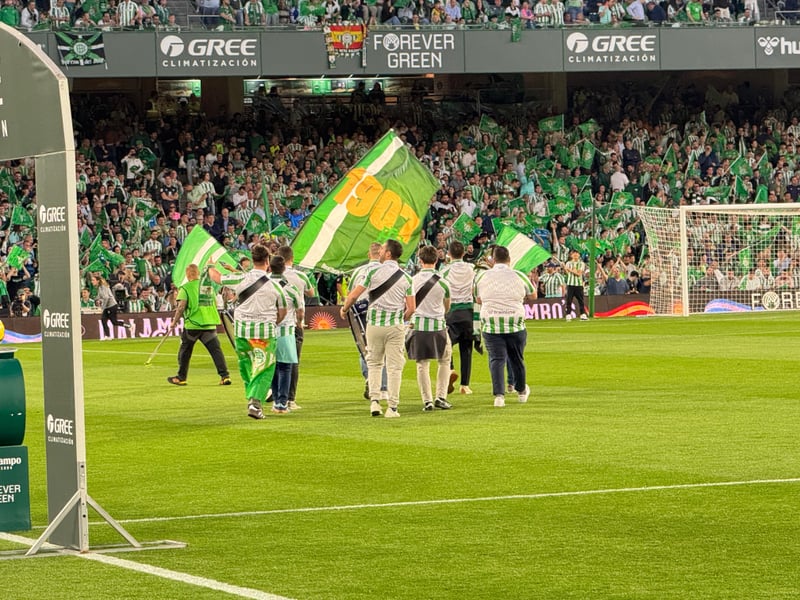 La banda de la Hermandad de San Benito de Sevilla hizo sonar el Himno del Real Betis en una previa donde desplegaron en Gol Sur una lona que rezó: "Te coronaron los ángeles para dejarte en Sevilla", un guiño a la Esperanza Macarena