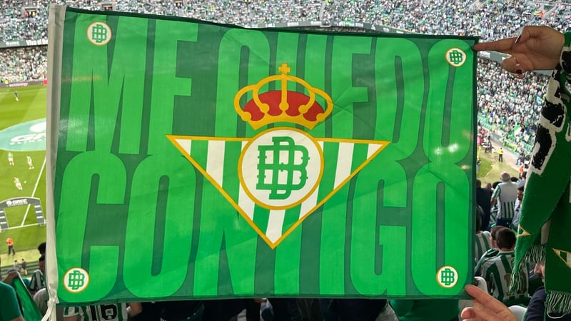 Para colorear el ambiente, el club repartió banderolas con el lema "Me quedo contigo" por todos los asientos de cada uno de los graderíos. Revolotearon al cielo del Villamarín conformando una estampa mágica al compás de las gargantas verdiblancas, que dejaron su voz para animar a su equipo para el duelo.