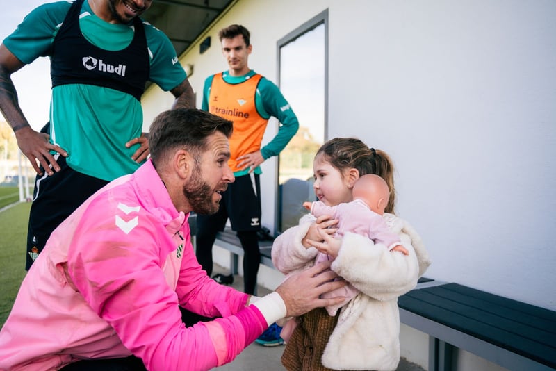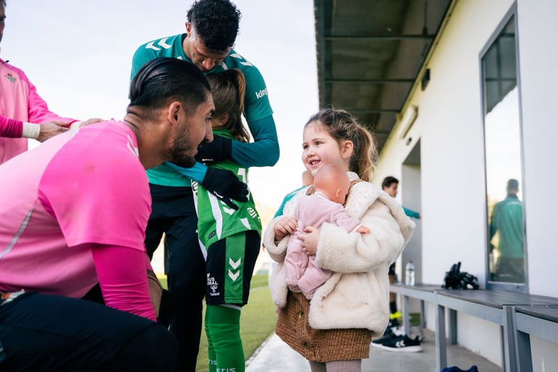 La pequeña, natural de Lora del Río, estuvo acompañada por Ryan, Fichaje Estrella de la Fundación RBB; Rafael Gordillo, presidente de la misma; su familia; y los representantes de la Fundación Martín Álvarez Muelas, entidad que lucha activamente por la investigación del DIPG (glioma difuso de línea media), uno de los cánceres pediátricos más agresivos que existen en la actualidad. El encuentro fue posible gracias a la mediación del portero Álvaro Valles y la Fundación Real Betis Balompié, que mostraron su apoyo a la causa y a Valeria en una mañana cargada de emoción.