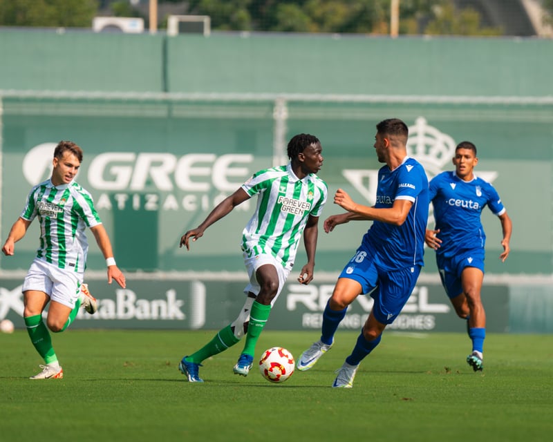 Lleva toda la temporada así. Así de bien, se entiende. De momento, los titulares y la gloria se los están llevando otros compañeros, como Mateo Flores, Carlos Guirao y Jesús Rodríguez, que ya han debutado oficialmente con el Real Betis. Incluso, Marcos Fernández se pegó media pretemporada a las órdenes de Manuel Pellegrini, como otro compañero de ataque, Pablo García. Unos pocos entrenamientos la temporada pasada y uno en la 24/25 constituyen todo el bagaje con los mayores de Souleymane Faye, de largo actualmente el futbolista más determinante de un filial que ha alcanzado por méritos propios el liderato del Grupo II de Primera RFEF al imponerse por 1-2 a la UD Ibiza, una remontada con la firma del senegalés, internacional absoluto ya con su país pese a contar con 21 años. El extremo mandó a la escuadra un gran pase atrás desde la línea de fondo de Dani Pérez y devolvió la gentileza al '8' a un cuarto de hora del final.
