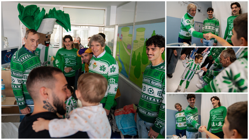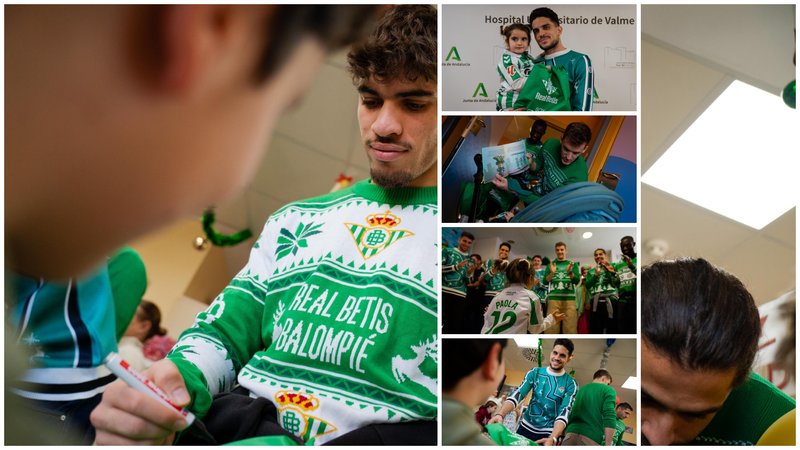 Los pajes reales se unieron también a una fiesta en los pasillos y las habitaciones del Macarena, el Virgen del Rocío, el Viamed y el Valme, donde por unos minutos se olvidaron de diagnósticos, pruebas, vías y análisis para conocer el lado más humano y solidario de los ídolos de los más pequeños, acompañados de mochilas, carpetas, bufandas y todo tipo de recuerdos en clave verdiblanca. Una jornada que recordarán mucho tiempo, cuando los entrenadores y futbolistas del Real Betis les visitaron para hacer más amenas sus rehabilitaciones y conseguir que olviden durante un rato que no están en el parque, viendo las luces navideñas o preparando, junto a sus seres más queridos la cena de Nochevieja, las reuniones en las calles para ver la Cabalgata de los Reyes Magos y la recopilación de regalos y juguetes el 6 de enero antes de volver a colegio con sus amigos.