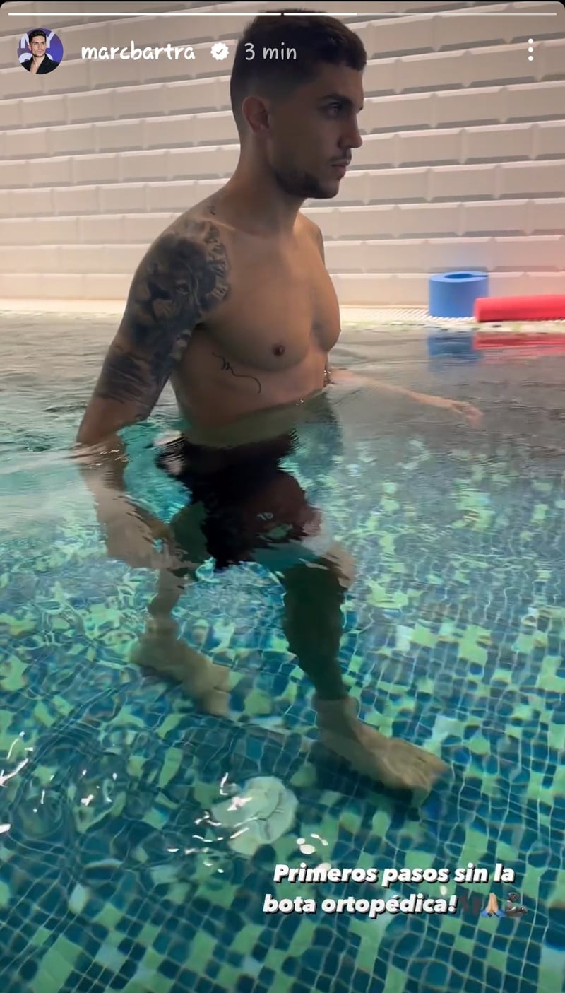 Un roto, muy a su pesar, en la planificación bética y un horizonte, en el escenario más optimista, que cifra su reaparición a mediados del mes de enero, aunque los médicos y los técnicos verdiblancos sonreirían si el '15' está en condiciones de jugar con todas las garantías en febrero. Llegó Sokratis Papastathopoulos, que estaba en paro, y se cruzan los dedos para que el emergente Riad no tenga que irse junto a Ez Abde con la absoluta de Marruecos a la próxima Copa de África. Como Bartra no puede ni debe correr, con los ejemplos ya mencionados, cualquier paso al frente es bienvenido. Como el que acaba de dar, casi literalmente, al desprenderse de la férula y la bota ortopédica que, junto a las muletas, le han acompañado desde que pasara por el quirófano el 19 de octubre pasado. Como compartió en sus redes sociales, el zaguero hace ya ejercicios de potenciación en la piscina y vislumbra ya el ansiado reencuentro con el césped de la Ciudad Deportiva Luis del Sol. Ya le queda menos.