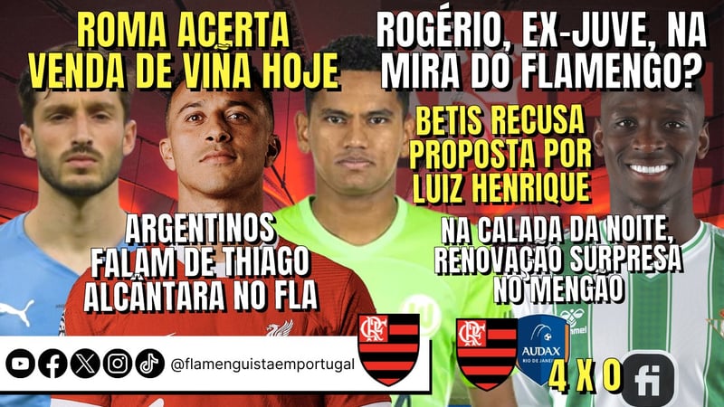 Descartados LA Galaxy (que se plantaba en la cesión), Fluminense y Corinthians, todas las miradas siguen apuntando a Flamengo, que filtraba contar con el beneplácito del zurdo para presionar en busca de una cesión remunerada con opción de compra, aunque maneja una partida de 14 kilos para contratarle. Las últimas noticias que llegan de la expedición 'rubro-negra' a Europa, conformada por presidente y director deportivo, hablan de cierto éxito con la Roma por Viña, con Rogério (Wolfsburgo) como 'plan B' para el lateral zurdo, así como de gestiones por Thiago Alcántara (Liverpool), pero no con el Betis, que se ha mostrado inflexible, insiste en el traspaso. Sin noticias de Palmeiras (debe vender antes a Kevin al Shakhtar) o de los otros pretendientes europeos de Luiz Henrique, la subasta se va quedando sin participantes poco a poco.
