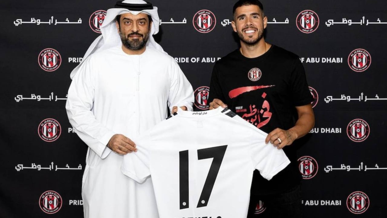 El exbético Pozuelo posa con la elástica del Al-Jazira.Twitter / @ALJAZIRAFC