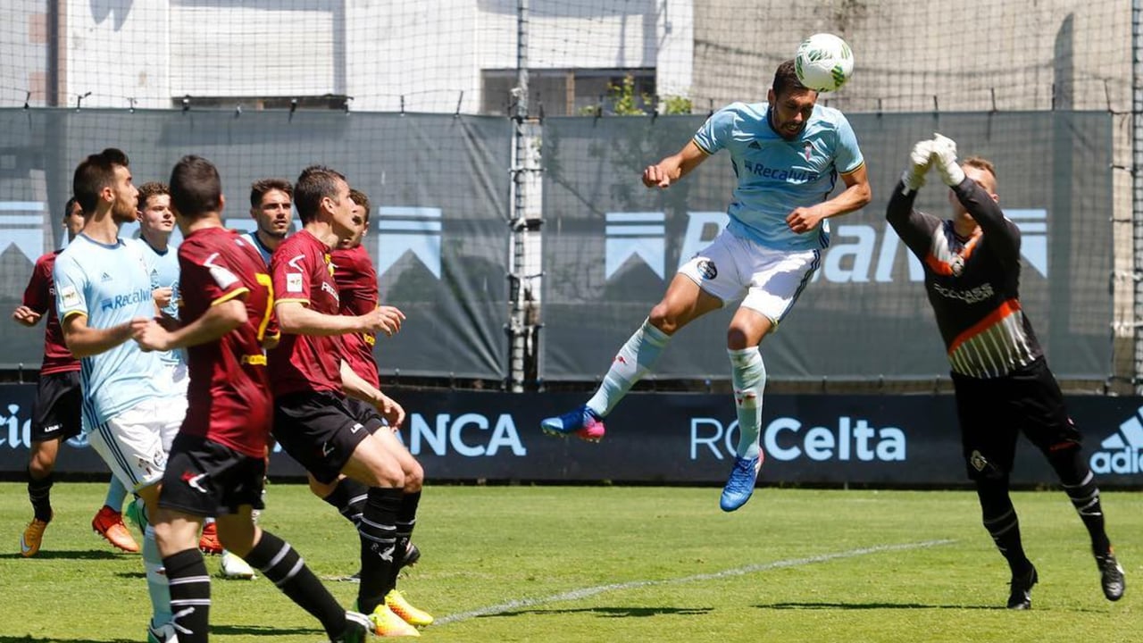 El artillero gallego cabecea a gol durante su etapa en el Celta B.@BorjaIglesias9