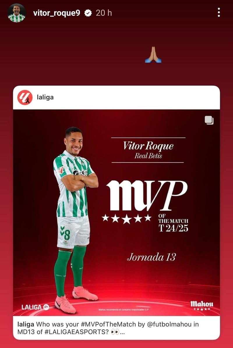 Vitor Roque ha sido elegido el mejor del encuentro ante el Celta en diversos foros. Lo dio absolutamente todo, fue capaz de fabricarse hasta cinco ocasiones claras de gol, acabó materializando una de ellas, en el momentáneo 1-1, y estuvo hasta el pitido final sin parar de incordiar a los centrales del conjunto gallego a pesar de que los últimos minutos los jugó con un fuerte dolor en el tobillo izquierdo, el mismo que se dañó nada más llegar a La Palmera.