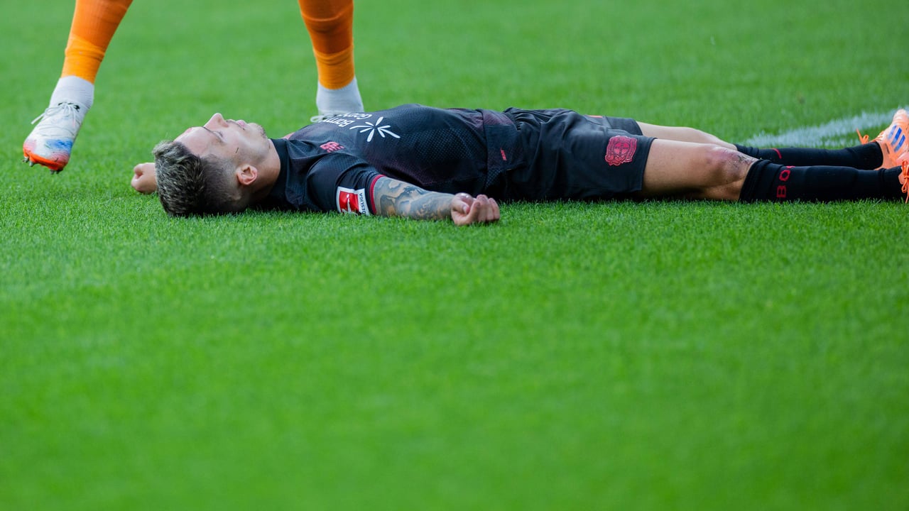 Alejandro Grimaldo tendido en la hierba tras el impactoCordon Press