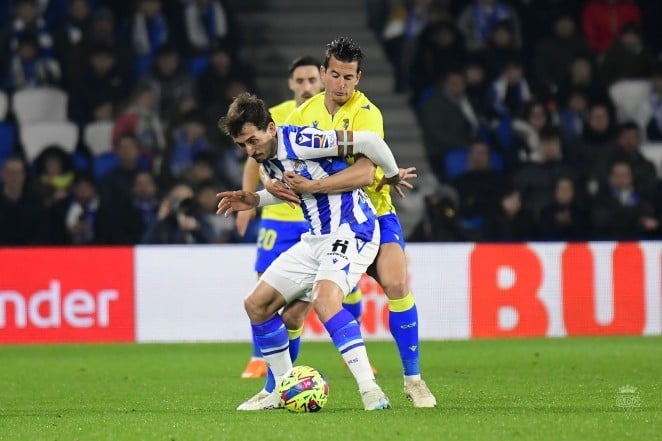 El Cádiz sacó un valioso punto (0-0) ante la Real Sociedad en el Reale Arena. Sergio González, entrenador del conjunto gaditano, valoró el encuentro en sala de prensa. "Ha sido un partido esperado. Esperábamos que mantuvieran la estructura del 4-3-3 y la Real ha metido el rombo. Cambiamos la estructura. En la primera parte ellos han estado más con el balón, pero entendiendo bien nosotros la fase defensiva, exceptuando la última ocasión tras un robo", apuntó.