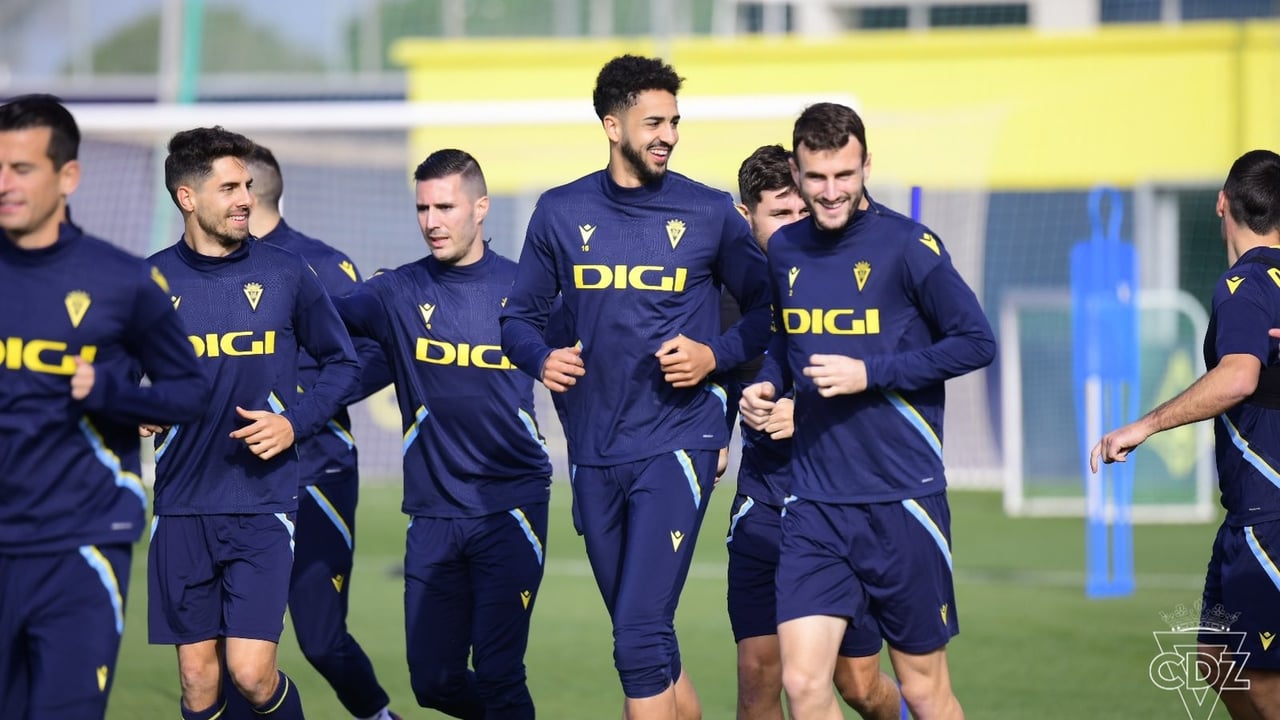 Jugadores durante el entrenamiento de hoy Martes.Cádiz CF