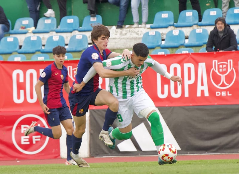 No pudo ser. El Juvenil A del Real Betis se quedó con la miel en los labios tras firmar una excepcional Copa del Rey, en la que dejó en la cuneta de forma brillante a Real Madrid y Atlético, y sucumbió en las semifinales disputadas en Villanueva de la Serena, sede de la 'final four', ante un efectivo FC Barcelona que hizo valer su pegada para vencer por 2-0 y luchará por el título este próximo domingo ante el Real Zaragoza, que apeó a su vez la UD Las Palmas.