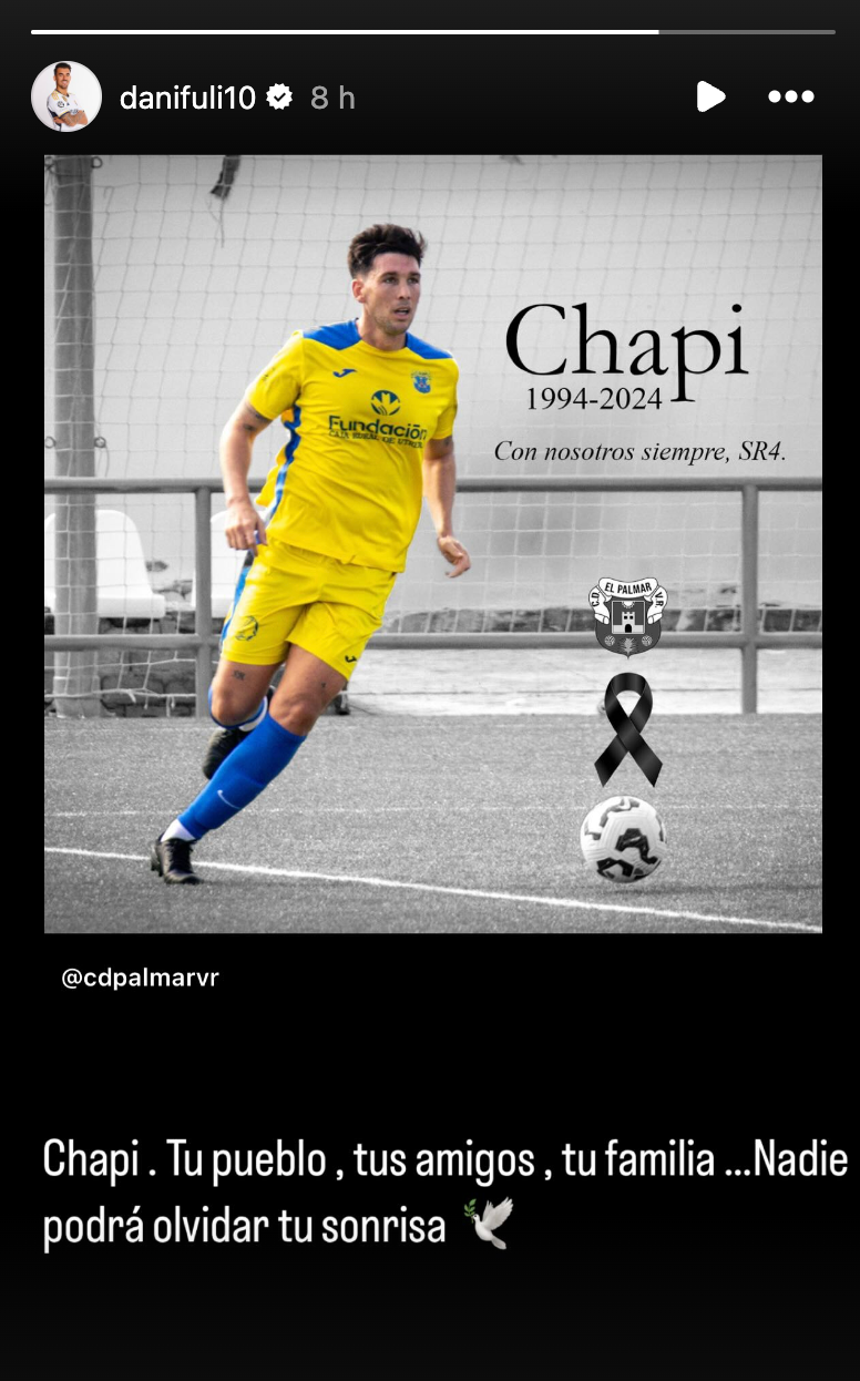 “Sin poder todavía siquiera asimilarlo, hoy lloramos la pérdida de nuestro compañero y amigo Chapi. Una persona que no solo brillaba en el campo, sino también en la vida. Su carisma, energía contagiosa y sonrisa eterna llenaban de alegría a quienes tenían la suerte de conocerle. Chapi no era solo un jugador; era parte esencial de nuestra familia. Su carácter único y su forma de ser hacían que todos lo quisieran. Él siempre decía con orgullo que era “el mejor”, y hoy queremos recordarle como tal: el mejor compañero, el mejor amigo, el mejor ejemplo de amor por este deporte. Enviamos nuestras más sinceras condolencias a su familia y amigos. Nos unimos a su dolor y les acompañamos en estos momentos tan difíciles.Te echaremos de menos, Chapi. Tu energía y tu sonrisa siempre estarán con nosotros. Descansa en paz”.