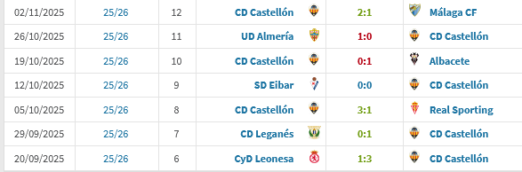 El Castellón rompió la racha negativa venciendo al Málaga e iniciando una serie de siete encuentros sin perder con 19 puntos de 21 posibles. La diferencia entre esa racha negativa y esta que está calcando el Castellón radica en los goles encajados. En octubre fueron solo dos, ahora el Castellón ha visto como le endosaban ocho en tres encuentros.