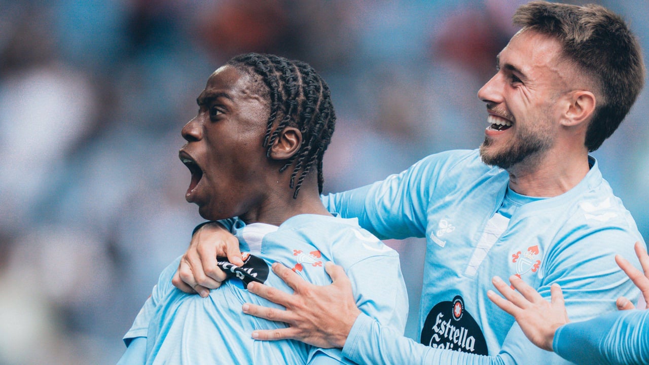 Ilaix Moriba celebró por todo lo alto su primer gol con el Celta. CORDON PRESS