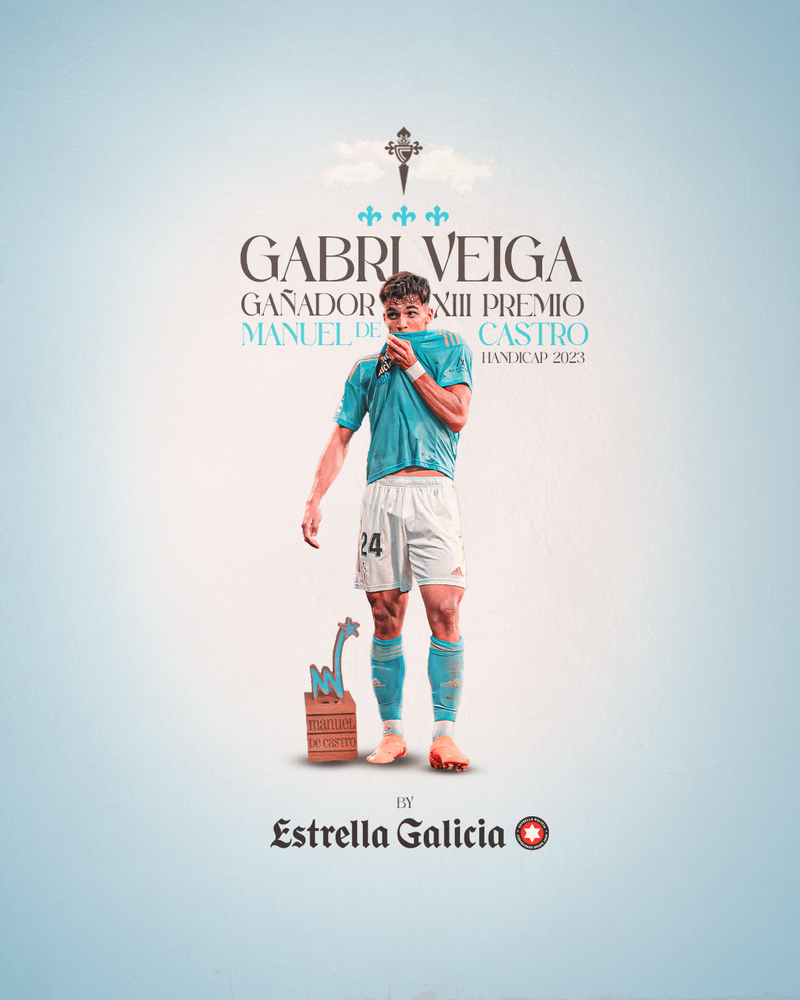 "Este domingo, Gabri Vega recibirá el premio Manuel de Castro antes del partido entre el RC Celta y el Rayo Vallecano en el estadio de Abanca Balaídos. Juan de Castro, nieto del fundador del Club Hándicap Manuel de Castro, será el encargado de hacer entrega del premio que reconoce al mejor jugador del RC Celta del año 2023. El evento se desarrollará en el terreno de juego luego del calentamiento de los jugadores y minutos antes del inicio del partido", explica el club celeste en un comunicado publicado a través de sus medios oficiales, demostrando su enorme cariño por su canterano con numerosos elogios a su breve etapa en el primer equipo celeste.