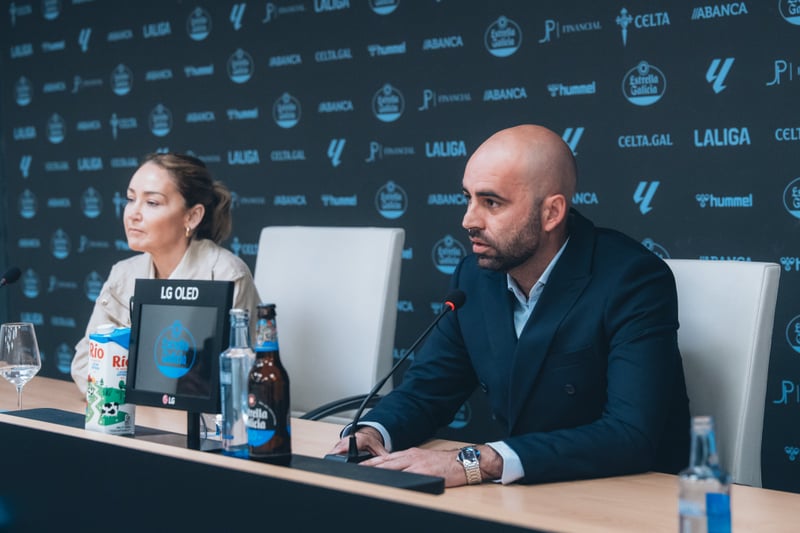 El técnico del conjunto gallego compareció este jueves en la rueda de prensa posterior a la renovación hasta 2028 de la que informaron los vigueses este pasado miércoles