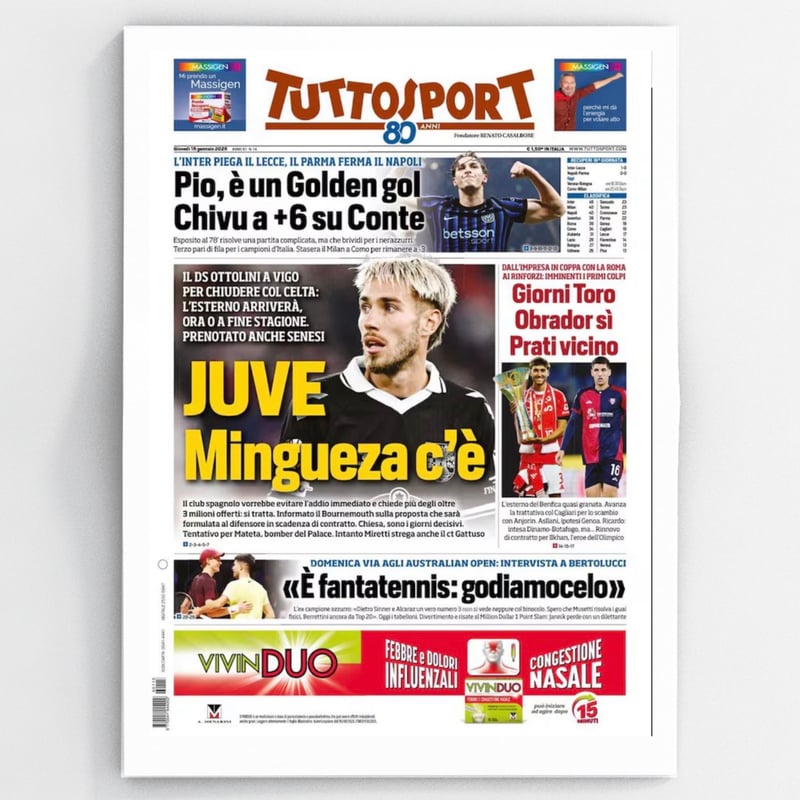Pese a todo, no son muy optimistas en Turín, aunque todo puede pasar de aquí al 31 de enero. También han trascendido las cifras del acuerdo de la 'Juve' con el jugador catalán, que casi doblaría el sueldo que percibe en el Celta. El club vigués no puede garantizarle más de 600.000 euros netos por temporada, tal y como apunta Tuttosport, que lleva a Mingueza a su portada en la edición de hoy. Sin embargo, los 'bianconeri' le ponen por delante algo más de un millón de euros neto por cada una de las cuatro temporadas que firmaría, hasta el 30 de junio de 2030.