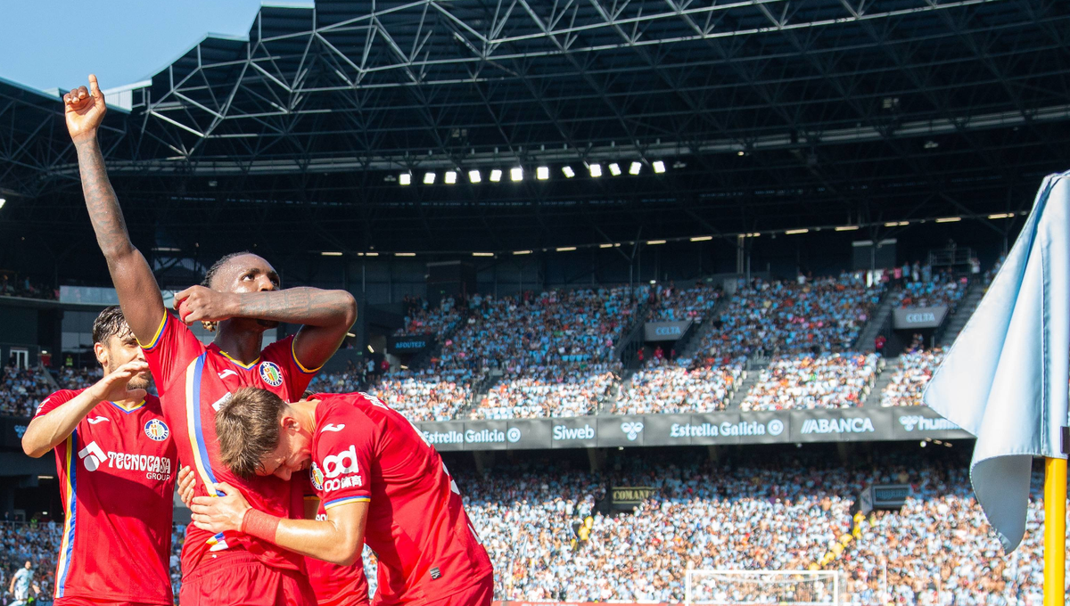 El Getafe celebra su gol con la grada de Balaídos al fondoCordon Press
