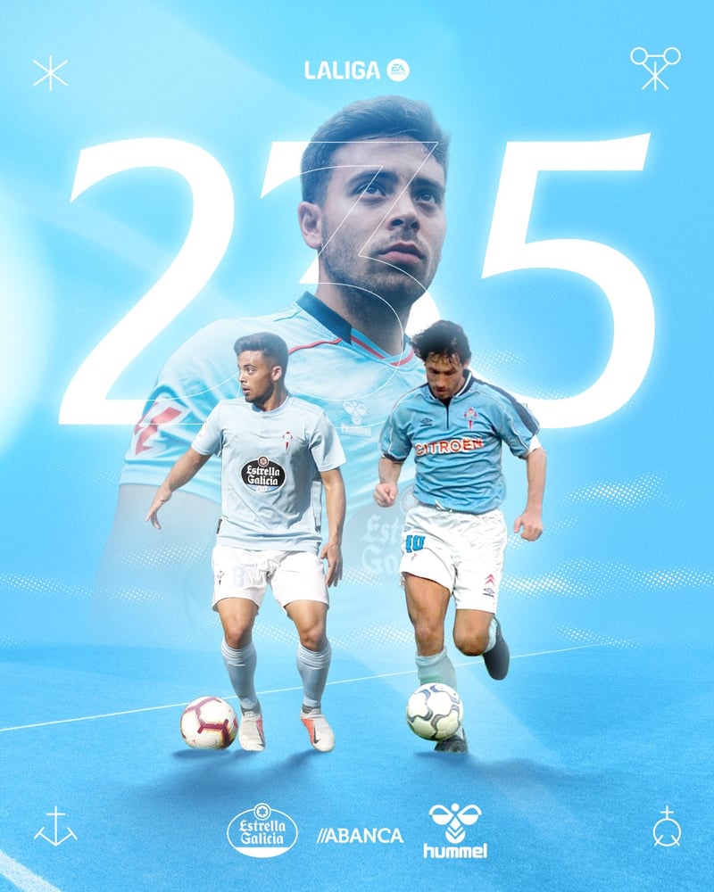El capitán del Celta de Vigo, con su participación ante la Real Sociedad, llegó a la cifra de 235 partidos como celeste en Primera, teniendo por delante tan sólo a Hugo Mallo y Iago Aspas
